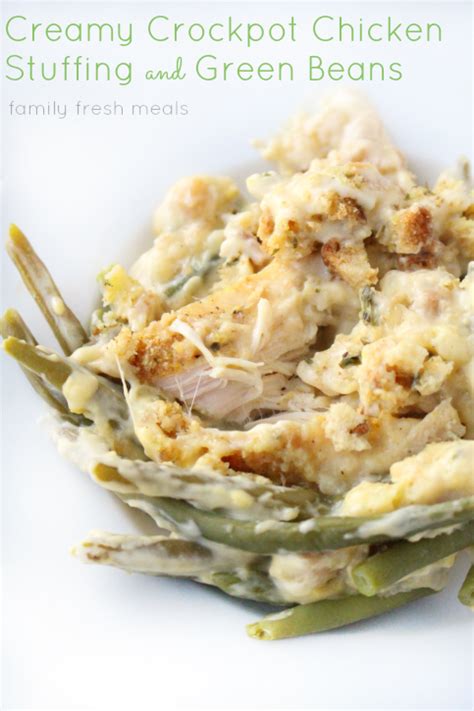 Creamy Crockpot Chicken Stuffing and Green Beans - Family from